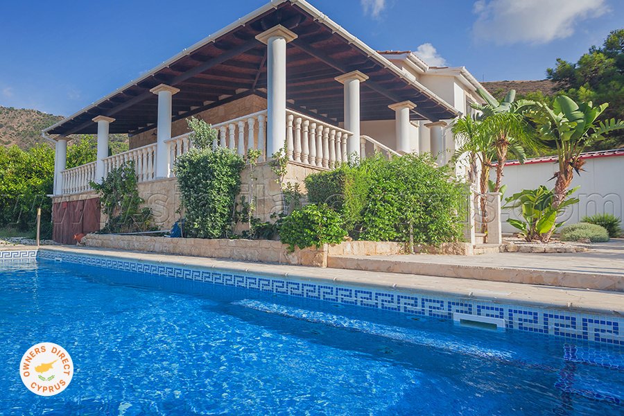 Superb 4 bedroom Villa in classic style and panoramic direct sea views of the Mediterranean, located in the quiet fishing village of Pomos within a few minutes from secluded private beaches and a fishing harbour. This is a lovely villa offers a very spacious roof patio, covered terrace, an open plan living, dining room and kitchen.