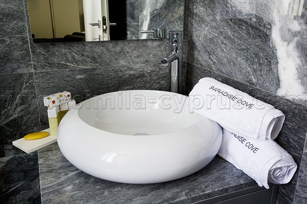 Pafos Elite Villas at the exclusive Paradise Cove is a small development of 10 luxury sea view villas in a quiet and peaceful seafront location. We have 1, 2 and 3 bedroom villas which can accommodate 2 adults up to 6 adults and 2 children under 12 years. These villas are all finished to the very highest standards and quality. The interiors are fitted out with modern designer Italian furniture, and all are equipped with Wifi, Satellite international TV, Security alarms and cameras, air conditioning and heating for those cosy winter nights.
