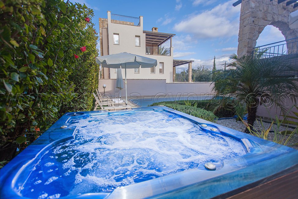 All these Elite Villas are constructed of high-quality modern materials, with natural stone, wood and marble. Each villa is situated on a spacious plot with a manicured garden with landscape design. Each villa is fully equipped and furnished, with private pools, "Jacuzzi" heated, some villas are also equipped with a sauna. The villas are designed for a family or a romantic holiday away from the hustle of the big city. Here you can relax and reconnect with nature, enjoy the warm sea with crystal clear water, picturesque sunsets and mountains. This Deluxe Complex is a 30-minute drive from Paphos, 2 min. From Polis and 10 minutes from Lachi. A short drive along the coast to the west is the most picturesque, unspoiled Akamas peninsula, protected by the National Park and the famous Baths of Aphrodite.