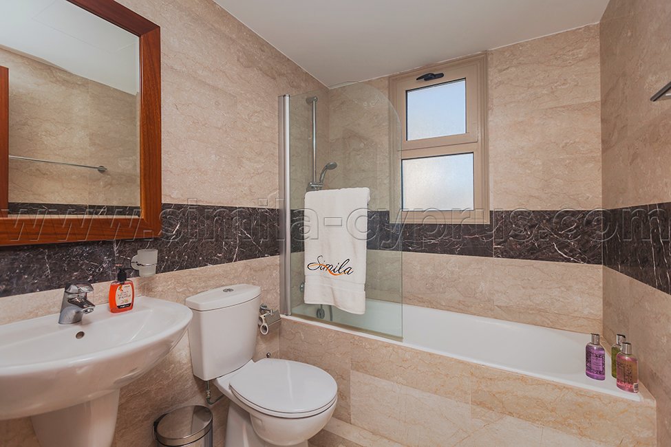 On the 1st floor, there are 2 double bedrooms, Jacuzzi bathroom and patio doors leading out to the large balcony which has relaxing furniture and lovely views both to the sea and inland to the hills.